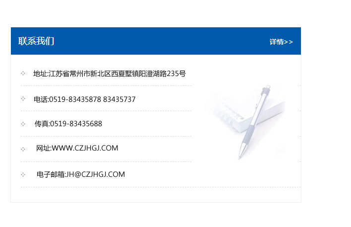 地址:常州市新北區友邦商務大廈1幢16、17層  電話:0519-85101652  傳真:0519-85112595  郵編:213022  網址:www.cz-jiayue_cn.baolor.com  郵箱:xiajifengaa@163.com
